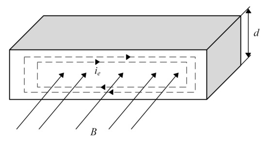 Due to the excellent magnetic conductivity, ferromagnetic materials in an alternating magnetic field generate induced electromotive force and induced current, leading to the power loss on the equivalent resistance of the circuit, called the eddy current loss. According to the law of electromagnetic induction, the induced electromotive force of a piece of silicon steel sheet with thickness d, height h and length l in Figure 2 can be written as: