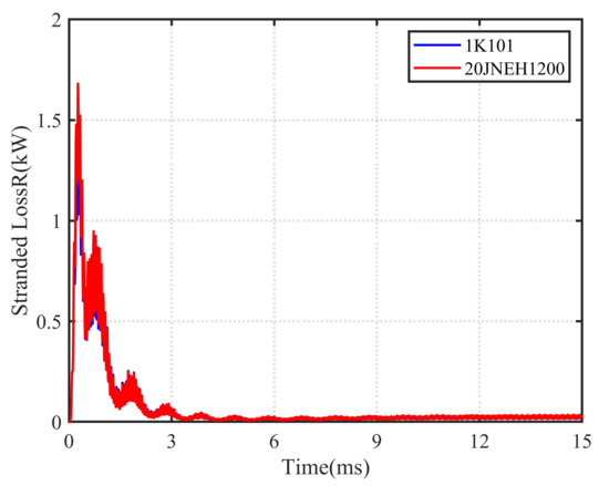 , , . The comparison of the copper loss are shown in Figure 6 and Figure 7, while that of the core loss is shown in Figure 8. The exact values of the motor losses are indicated in Table 3.