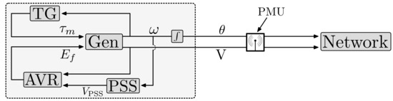 Predictive modeling algorithms which are free from these limitations can provide a variety of advantages. If power system modeling can be performed by a parameterized “black box” approximation, then the associated algorithm will be freed from the constraints of a potentially erroneous, or completely unknown, prior model. Additionally, if this algorithm can be implemented in the face of ambient, rather than severe, operating conditions, then updates can be performed on the fly. There is a large collection of well-cited literature devoted to the creation of linear dynamical black box models from time series data in power systems, primarily at the “wide area” level, but also at the individual generator level. Excellent reviews on the topic are provided in [15,16]. One of the most popular “modal identification” methods, known as Prony analysis, was first applied to power systems in 1990 [17]. It was further shown in [18] that Prony analysis applied to transient data and Wiener-Hopf linear prediction applied to ambient data could both identify very similar system dynamics. Subsequent publications further refined these methods [19,20], but most of them were focused on identification of system modes (i.e., poles), rather than the full transfer functions. More recent work has focused on building model reduced transfer functions from measured terminal data. Using a simple autoregessive with exogenous input (ARX) model, [21] develops a process for computing a dynamic equivalent transfer function with simulated or measured data. Voltage magnitude and frequency are chosen as inputs, while active and reactive power flows across lines are chosen as outputs. MIMO transfer function approaches are developed in [22], where poles, zeros, and model order are iteratively perturbed based on a least-squares numerical procedure inside a standard MATLAB toolbox.