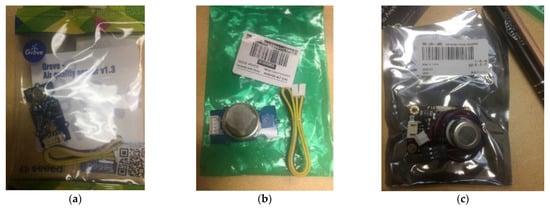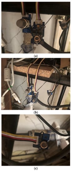 Installed sensors: (a) indoor air quality sensors, (b) gas sensors and (c) VOC sensors.