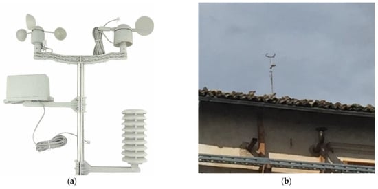 In the red circle the weather station installed on the roof: (a) weather station (b) weather station on the roof of the Palace.