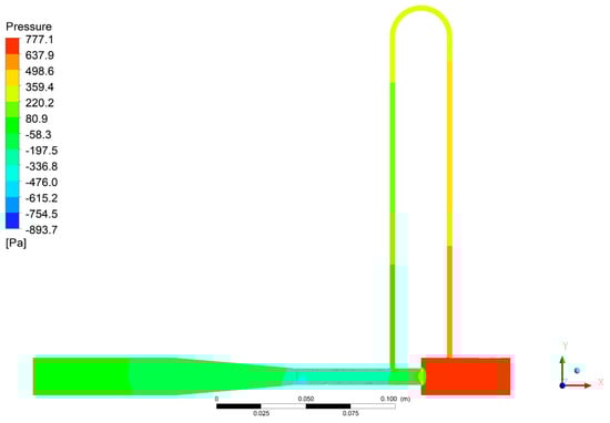Regarding the temperature field (Figure 7), the lithium flowing inside the main pipe (Venturi suction) is kept at the inlet temperature, while the lithium flowing in the capillary loses about 2 °C because of the thermal losses in the box.