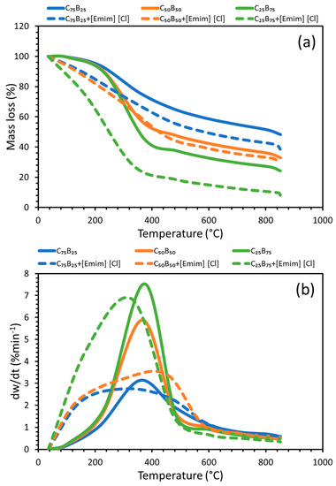 | C50B50 + [Emim][Cl] | 68.63 | 23.97 | 7.40 | 2.86 | 19.18 |