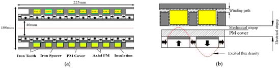 Proposed an energy-harvesting shock absorber: (a) Design overview of linear electromagnetic generator; (b) One pole pitch.