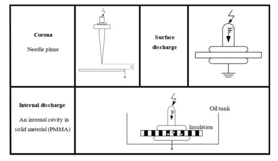 9] applied even at DC conditions has been investigated for several years. However, the key parameter of the PD signal that determines the information about the certain type of PD is still missing. Since there is no phase at DC, it is necessary to find other methods and parameters. The presented study shows PSA possibilities for several typical PD arrangements such as corona, surface, and internal discharges. Subsequently, it compares the test results with the PD activity and PSA simulations.