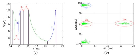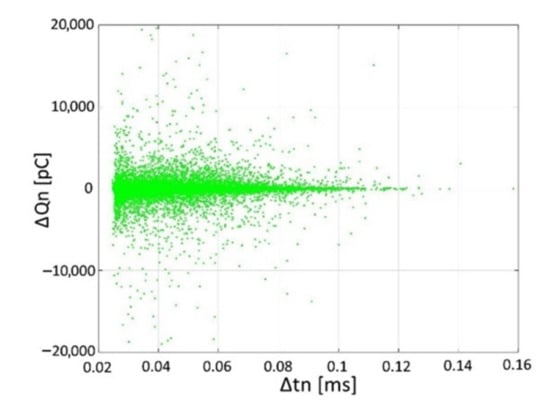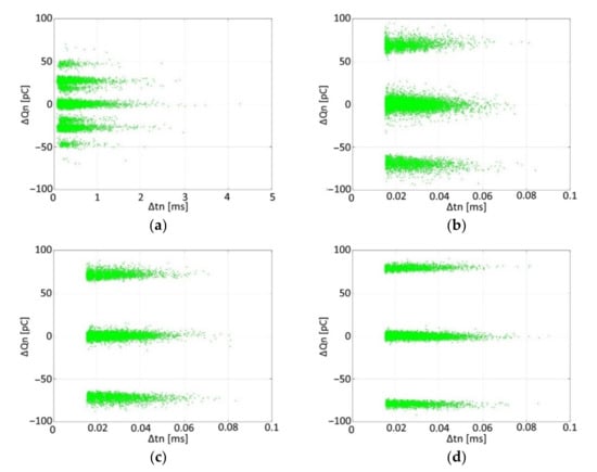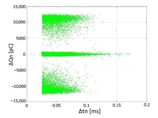 Figure 5 shows the process of creating the PSA clusters. It is obvious from the plots that the transition between different charge levels is significantly more important than the number of repetitions of the pulses and the exact value of its charge. Transitions between high and low pulses create the Q-t PSA clusters in the negative part of the ΔQ