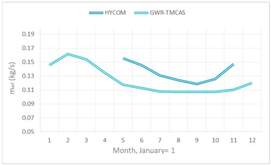, only data between May and November are available for HYCOM. In these months, both mass fluxes seem to stay stable, and
