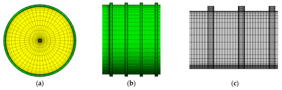 The grids for numerical analysis (a) Pipe inlet, (b) the pipe wall, (c) in the corrugated pipe.