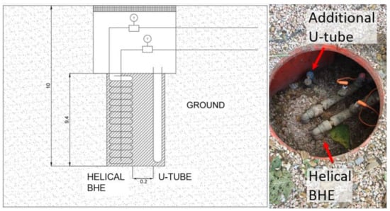 Three different types of BHE (single-U, helix, and coaxial) were installed at the site with an appropriate monitoring and control system that enabled a stable level of thermal power to be injected between the inlet and outlet of the borehole [23]. This arrangement can be used to perform complex investigations with the objective of acquiring very detailed and accurate TRT measurements (as in this study) or to carry out thermal assessments of experimental boreholes.