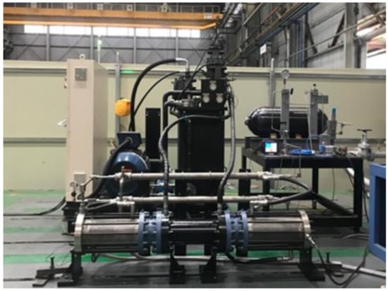 In the hydrogen compression system, it is a heat exchanger installed to lower the temperature of high-temperature hydrogen before passing through the compressor and entering the high-pressure container. The system’s heat exchanger uses a reverse flow-type double-tube heat exchanger. The double-tube heat exchanger is composed of a single tube and a jacket, and the high-temperature fluid flows through the inner tube. The low-temperature fluid flows outward, and the heat is transferred through the tube wall under normal conditions. The specification of the heat exchanger is shown in Table 5. The double-pipe heat exchanger is shown in Figure 4.