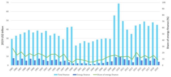 The World Bank’s total development finance and energy finance (1985–2019). Source: authors’ illustration based on [].