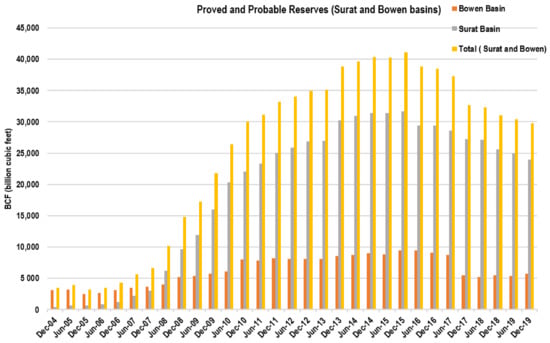 2P reserves for the Surat and Bowen Basins since 2005 [27].