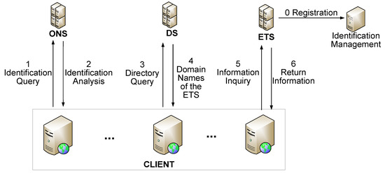 Based on the EPCglobal network, the TSP consists of the discovery service (DS), which provides a list of the ETSs that are associated with a target product, and the ONS offering a network address of a DS in response to a user query. ONS is the core application service of the IoT, which can help to achieve the unification of the underlying data structure and the query of information.