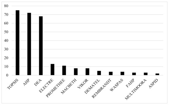 A total of 276 scientific articles concerning the application of MCDA or MCDM techniques to selected decision-making problems in the field of urban energy from 2010 to 2020 worldwide were analyzed (Figure 2). The authors studied MCDA trends and applications in urban energy. During the analysis, the most frequently used MCDA techniques identified as associated with urban energy were TOPSIS, AHP (Analytic Hierarchy Process), DEA (Data Envelopment Analysis), ELECTRE (Elimination et Choice Translating Reality), PROMETHEE (Preference Ranking Organization Method for Enrichment Evaluation), MACBETH (Measuring Attractiveness by a Categorical Based Evaluation Technique), and VIKOR (Vlsekrzterijumska Optimizacija i Kompromisno Resenje). Furthermore, Mardani et al. [39] found that most researchers applied fuzzy MCDM, hybrid MCDM, and TOPSIS. Xu et al. [40] summarized the research on DEA in the field of energy efficiency.