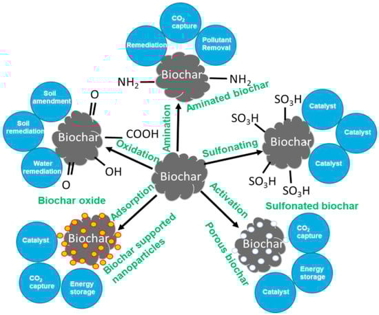 - Oliveira, F.R.; Patel, A.K.; Jaisi, D.P.; Adhikari, S.; Lu, H.; Khanal, S.K. Environmental application of biochar: Current status and perspectives. Bioresour. Technol. 2017, 246, 110–122. [Google Scholar] [CrossRef]