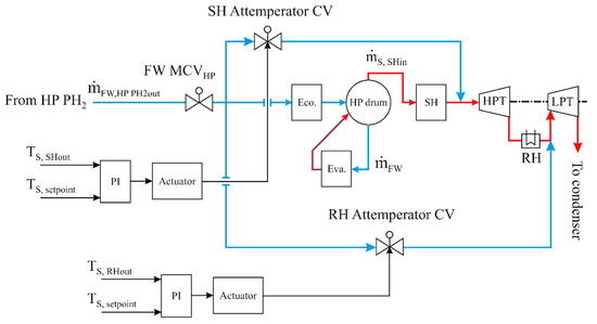 SH and RH attemperator controllers (simplified).