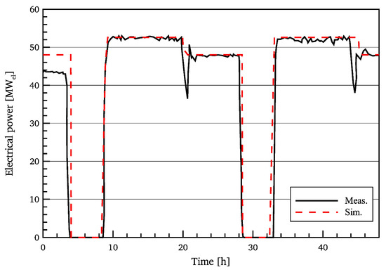 Finally, it should be mentioned here that the predictions of the power block have been validated versus experimental data from the 50 MWel Andasol II power plant in Spain during the summer days. The comparison showed a very good agreement with the measured data, as illustrated in Figure 16 [33].