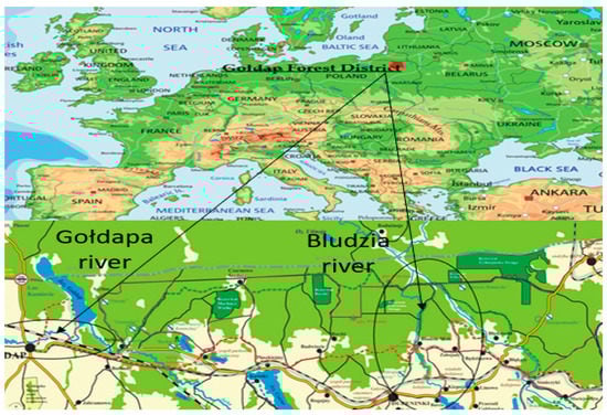 The location of Gołdapa and Bludzia rivers in the Gołdap Forest District in the Regional Directorate of State Forests, Białystok, Poland [17].