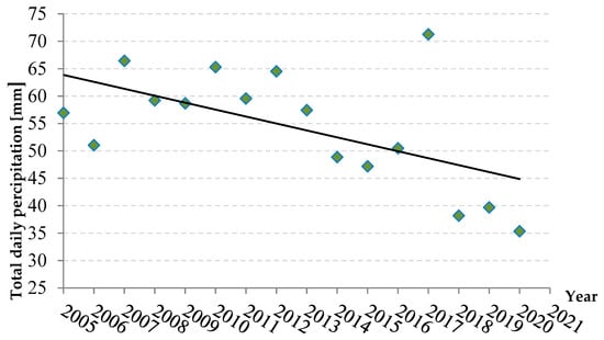 Average daily precipitations in the Gołdap region in 2005–2021 in Poland [27].