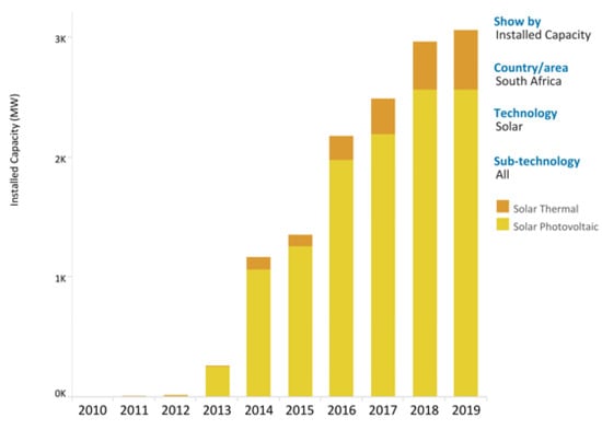 - Unwin, J. Solar Power in South Africa: What Are Its Leading Plants? 2019. Available online: https://www.power-technology.com/features/solar-power-south-africa/ (accessed on 1 April 2021).