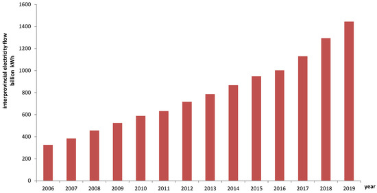 Size of Chinese inter-provincial electricity flow from 2006 to 2019 [44].