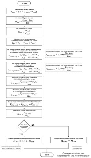 Figure 4. Algorithm for calculating methane content of coal for the drill cutting and core samples.