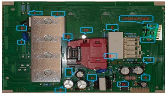 To perform the analysis of the proposed formulation we examined the PCBs of a washing machine and a dishwasher. For example, Figure 1 shows the printed circuit board of the washing machine and its components. The components of the particular printed circuit boards and their corresponding cost are listed in Table 2. The suggested methodology’s goal is to determine which of the components listed in Table 2 should be replaced in order to prolong the life of each PCB within the constraints of the customer’s budget. The information for the cost of each component is derived from different manufacturers’ catalogs considering their corresponding retail prices and averaging them.