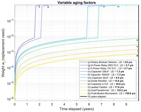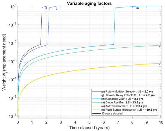 - Once a type of component reaches its 100% operational life expectancy, Li, its weight remains fixed to a maximum value.