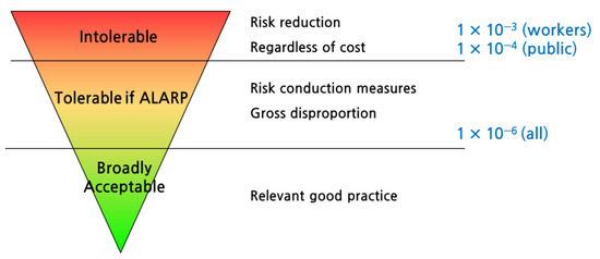- Melchers, R. On the ALARP approach to risk management. Reliab. Eng. Syst. Saf. 2001, 71, 201–208. [Google Scholar] [CrossRef]