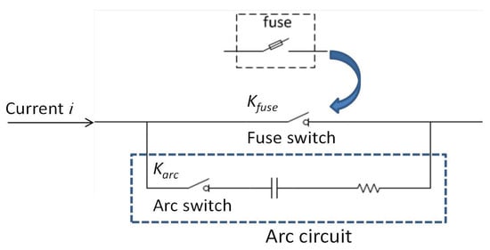 A contactor is an electrically controlled switch gear. Contactors are not designed to interrupt an overcurrent. Therefore, a fuse and contactor combination can serve as both a switch gear and a power protective device. Fuses act as sacrificial protective devices against overcurrent faults in AC and DC electronic circuits, and are widely applied in modern power systems, such as distribution feeders, transformers, induction motors, and heaters. Fuses have demonstrated simple structures, fast responses, and economic and reliable performance characteristics []. Under normal operating conditions, a fuse has a very small and negligible resistance in an electric circuit. When a short-circuit fault occurs, the fuse will heat up and start to melt, and a gap will be generated in between two ends of the fuse. The gap will generate an arc current, which will further melt the fuse. As the gap enlarges, the arc is weakened until the two ends are fully isolated.