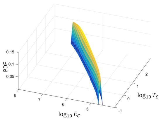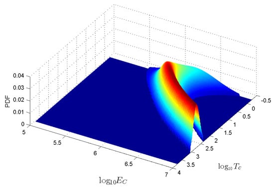 We further constructed the simulation model for “Square D QOB-3100” [], which is a type of TMCB that is used in power distribution panels. Since the sampling, curve fitting and regression procedure is essentially similar as in the previous example, these procedures were omitted in this example. We displayed the probability distribution model for the thermal-tripping function as shown in Figure 10.