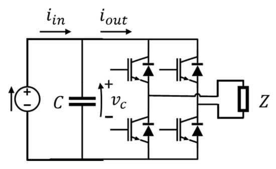 Obtaining the transfer function is necessary for controller design and, as stated previously, the group formed by the solar panels and the isolated DC/DC may be modeled as a current source [26]. Therefore, the equivalent circuit shown in Figure 4 represents a CHB cell.