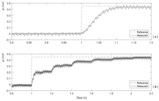 Angle tracking for discretization time of (a) 10 ms and (b) 100 ms.
