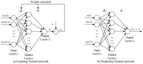 Structure of BP neural network. (a) Learning neural network; (b) prediction neural network.