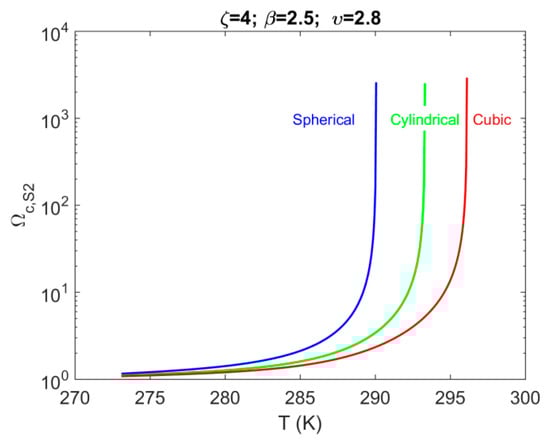 In the current Section, we consider a porous system consisting of a single pore-body (spherical, cylindrical, or cubic) that is connected with four (i.e., ) cubic pore-throats (i.e., system S2). The remaining geometrical parameters are defined and have values that are similar to cases considered in our previous study (part I). In particular, the parameter, is defined as the ratio of the radius of the pore-body () over the radius of the pore-throat (): . Additionally, the parameter is defined as the ratio of the length of the Unit Porous Block (UPB), (defined in part I), over the radius of the pore-body as follows: .