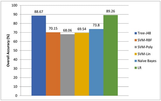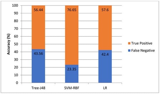 Obtaining real-time and unbiased datasets is a major difficulty when using machine learning methods. Numerous datasets are inner and cannot be united due to confidentiality and consumer privacy concerns, or they may be missing key statistical properties. Because of these difficulties, most industry settings avoid exchanging their protected network data. As a result, researchers choose to create datasets for testing and training in confined or simulated experimental contexts, which may be limited in scope. When machine learning frameworks are educated on a single dataset, the semantic gap between the outcomes and their application is common. The supervised machine learning frameworks that perform well with one dataset may or may not perform well with totally various datasets generated under various simulation or experimental circumstances, according to Bhamare et al. []. To demonstrate this, Bhamare et al. employed a separate dataset to test the aforementioned frameworks and found that they performed significantly worse, as presented in Figure 4 and Figure 5.