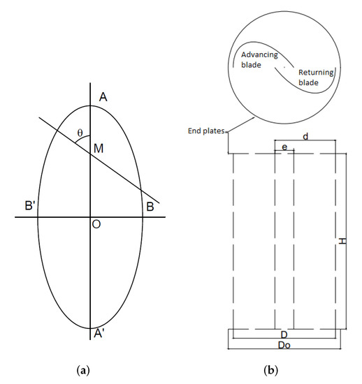 Geometric aspects of the Savonius wind turbine, (a) Sectional cut of an ellipse, (b) Savonius rotor geometry.