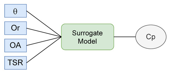 The aim is to fit a surrogate model that receives the input data X (design parameters of the wind turbine) and estimates the output Y (power coefficient of the wind turbine). Figure 1 shows the diagram that illustrates this process. For this purpose, machine learning algorithms are used for regression, following the supervised learning approach.