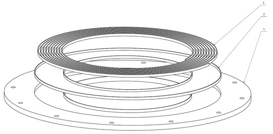 The structure of the rotor disc (the construction principle for the upper and the bottom discs is identical); 1—rotor disc, 2—low magnetic permeability coating, 3—channel filling.