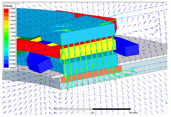The magnetic field distribution obtained for a single pole pitch of the proposed construction is presented in Figure 9.