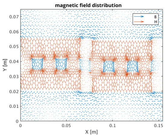 Magnetic field distribution obtained by using 2D FEM computation performed with a self-developed program.
