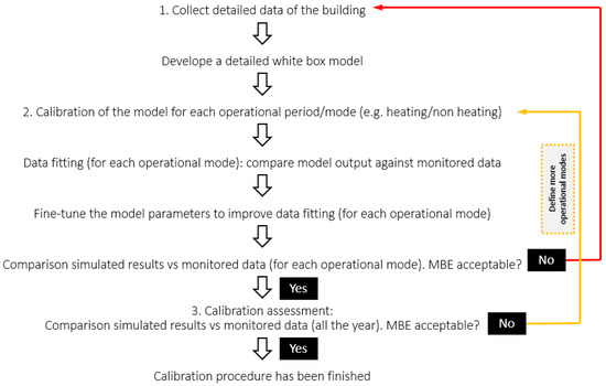 The following stepwise procedure to calibrate the building model has been followed for a robust approach, and in Figure 1 the procedure can be seen as a flowchart: