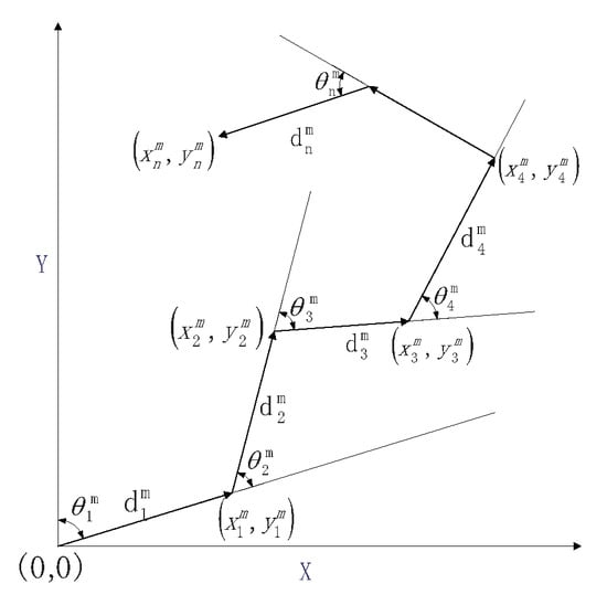 In polar coordinates, the robot position is localized by measuring the relative angle and distance step by step, which is shown in Figure 1. The corresponding metric is expressed as: