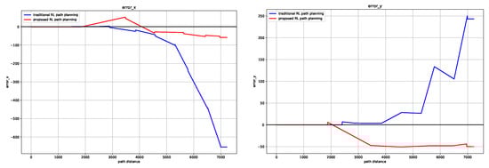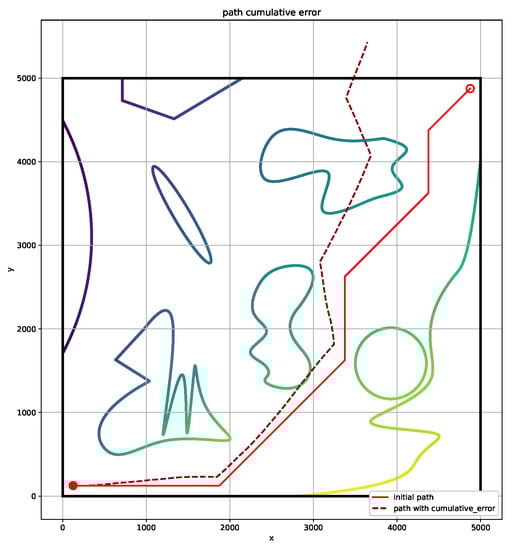 Furthermore, traditional planning methods rarely perform fault-tolerant on the control strategy [13]. Therefore, it is quite challenging to plan the path without considering the inevitable errors. Ref. [14] demonstrated a fully convolutional network method to learn human perception, with a real-time RRT* planner to enhance the planner’s ability. By the deep Q-networks calculated from the dense network framework, ref. [15] solved the robot drift issue. Ref. [16] improved the hybrid reciprocating speed obstacle method with dynamic constraints. However, the current approach does not consider the mechanism of initial cumulative error to reduce the positioning uncertainty, which is unacceptable for robots with fine operations.