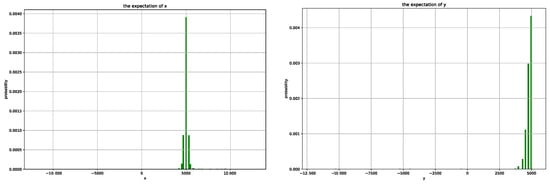 In the process of multiple iterations of planning, the expected value of each path in the x and y directions will fluctuate greatly, especially at the beginning of the algorithm. This is caused by the complicated path caused by probability in the early iteration process. After the algorithm converges, the expected values in the x and y directions remain around 4750 and 4750, as shown in Figure 7, which verifies the reliability of the algorithm.