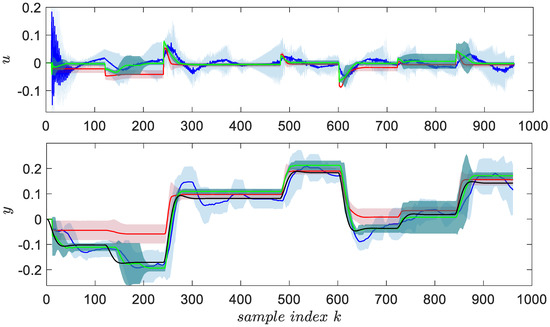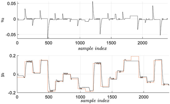 The VSFRT feedback control concept is briefly detailed in this section. Since it relies on state information for feedback, it uses again a state-space model, this time it is the model (48), together with a different rationale for computing offline the virtual reference input. It generalizes over the classical nonlinear virtual reference feedback tuning (VRFT) concept [40,41,42,43,44,45,46,47] in the sense that the control law is not explicitly depending on the output feedback error as in but rather in the form or, more generally, depending on the lumped regressor hence resulting in the law Starting from a dataset of I/O samples collected from the system (47), VSFRT computes the virtual trajectory of (48) first. The virtual reference is afterwards computed as . From this, the virtual lumped regressor builds the dataset of states as . The VSRFT principle solves (50) indirectly by solving a controller identification problem posed as [48]