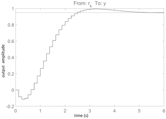 Starting with the I/O data collection from the closed-loop system under the P-type controller and with the ORM input-state-output data collected offline, the trajectory has 2400 samples out of which only 2369 obey the piecewise-constant generative reference input model . A total number of 100 iterations lead to the MFVI-RL controller matrix for the controller modeled as , shown performing in Figure 7. We stress that the linear controller structure complies very well with the 2DOF controller structure (and with the subsequent VSFRT controller structure), in an attempt to investigate and check the best achievable framework-dependent control performance.