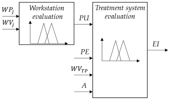 Figure 1 shows a hierarchical fuzzy logic model for evaluating municipal waste treatment systems. The output variable of the model is the waste treatment system evaluation index (EI). It depends on the values of four input variables: