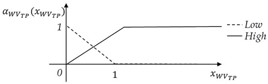 The waste stream irregularity ( W V j ) is calculated for a variable amount of waste processed in a specific time unit. The selected time unit must be identical to the one for which the workstation productivity was determined. The flux non-uniformity informs about the influence of flux variability (deviation from the average) on the workstation performance. The membership functions of the waste stream irregularity are presented in Figure 3.
