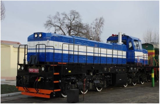 Efficient transportation aims to meet the demand for transport services while minimizing resources used for this purpose and reducing cost. Improvement of transport efficiency is possible, on the one hand, by using the resources already held, by using tools for planning [], organization [,,], and optimization of the involved processes [,,]. On the other hand, it is possible to further increase transportation efficiency by developing appropriate technology that enables converting the available forms of energy into the vehicles’ mechanical energy, assuming the minimization of energy losses. Technologies of this type can cover a wide range of applications, examples being technologies used in the wheel–rail interaction zone [,] or technologies used to control and propel the vehicle [,,]. In railway transport, a significant part of the cost is constituted by various technical and shunting operations, which constitute an integral part of transportation []. Considering the high wear degree of traction vehicles used in Ukrainian enterprises and JSC “Ukrzaliznytsia” shunting operations, it is expedient to radically renew the stock of shunting locomotives. The inconsistency of their technical characteristics and parameters referring to the standards of up-to-date locomotives should also be considered. Modernization is the most widely spread approach, currently performed in two ways: profound modernization of a locomotive or its motorization. The crucial factor of both methods is replacing a diesel engine, which significantly reduces fuel costs [,,,].